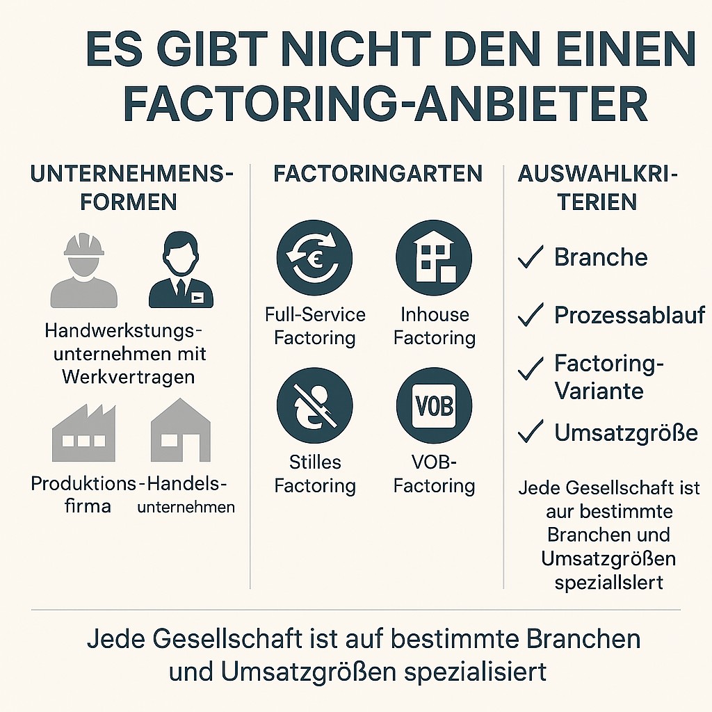Ein wesentlicher Punkt für Kanzleien: Nur wenige Factoringgesellschaften kaufen Rechnungen nach VOB oder Werkvertragsrecht an. Der Grund liegt in der Anfechtbarkeit, den Teilzahlungen und dem Abnahmecharakter.
